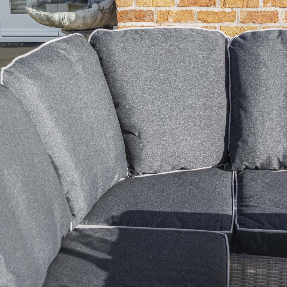 • The weatherproof Putty Grey rattan effect weave blends beautifully with the charcoal-coloured cushions