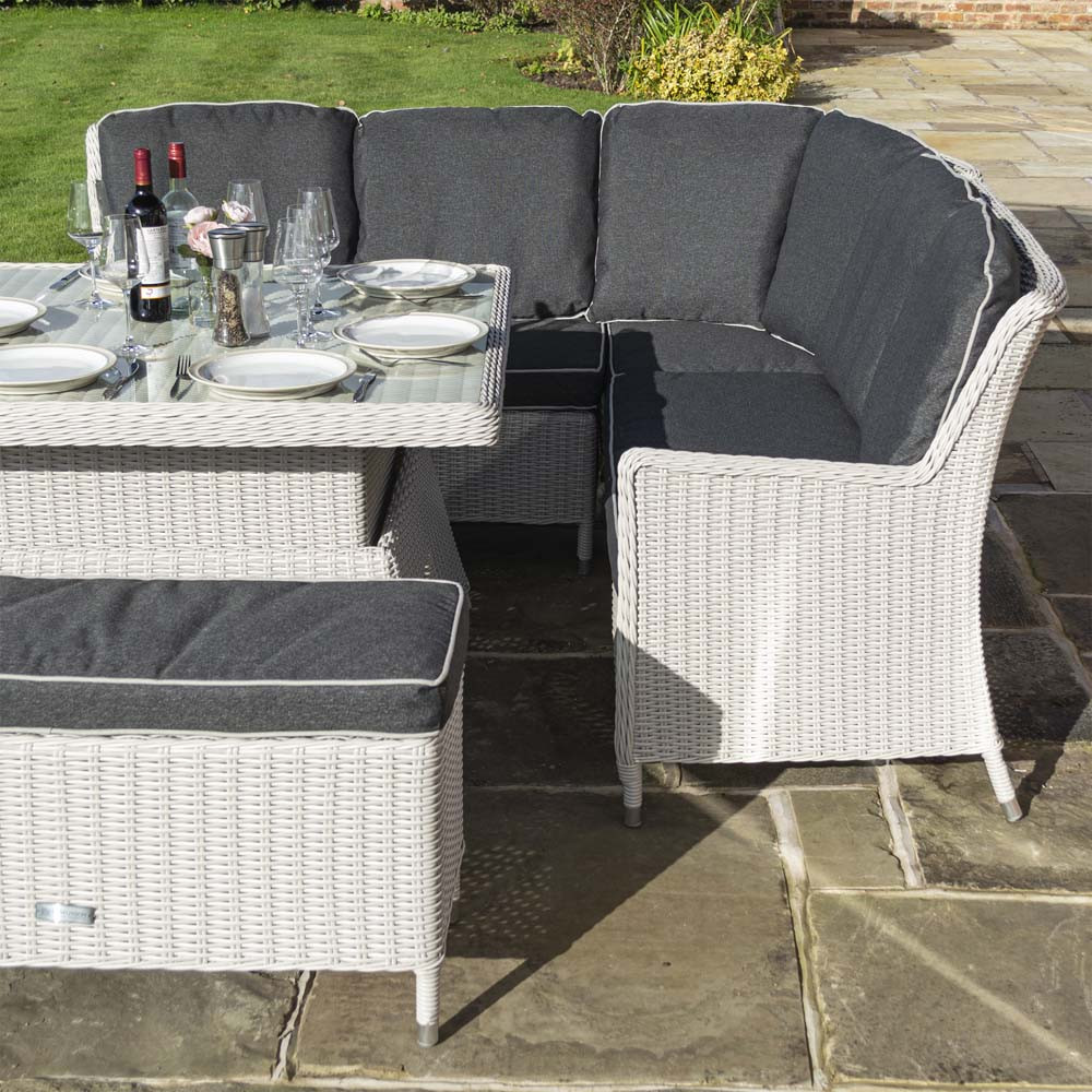 Features & Benefits: DISCON - Rowlinson Prestbury Corner Rattan Dining Set - Putty Grey