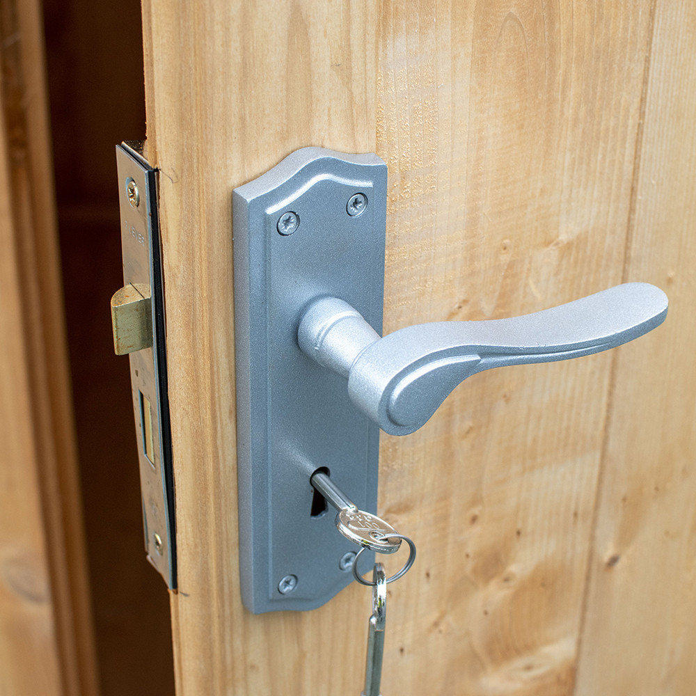 The Shire Pent Garden Bar perfect for bringing some additional excitement to the usual BBQ and entertaining your friends in style, whilst the removable hatch allows it to be used as a useful 6ft x 4ft garden store in the winter.The hatch closes by lifting it into position and fixing the four bolts. The Shire pent bar features a lockable door that is not interchangeable.