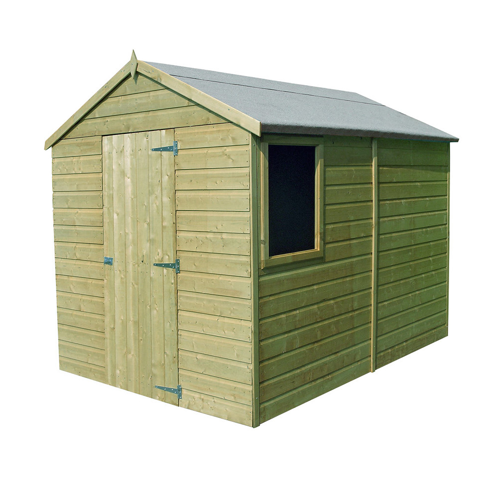 DISCON - Shire Durham Pressure Treated Shiplap Apex Shed - 6ft x 8ft (1790mm x 2380mm)