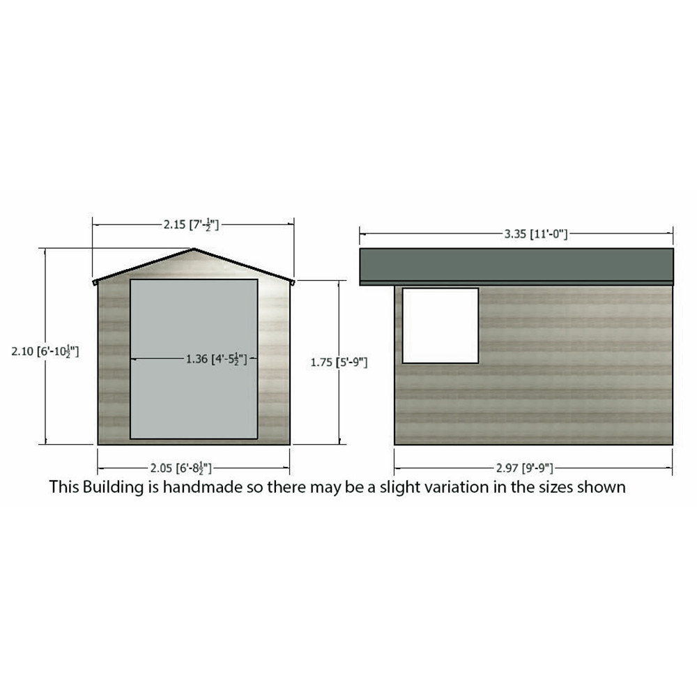 • 7ft x 10ft (2050mm x 2970mm) size shed