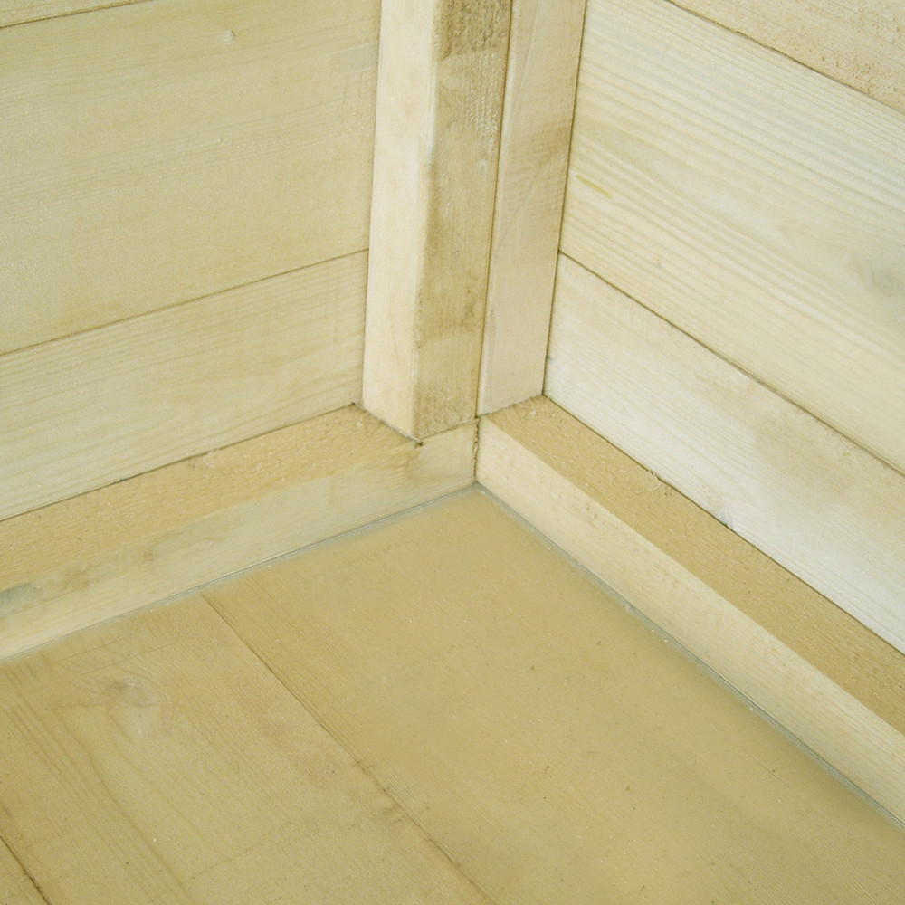 The wall panels of this Shire shed are made from 12mm shiplap FSC-certified timber. The timber is pressure-treated, enabling a long life with low maintenance. The shed can still be painted or stained for decoration. The roof is constructed from solid board (OSB) to ease installation and the floor is tongue and groove timber. All Shire sheds feature strong 34mm square framing and come complete with a fixing kit, roof felt and installation instructions.