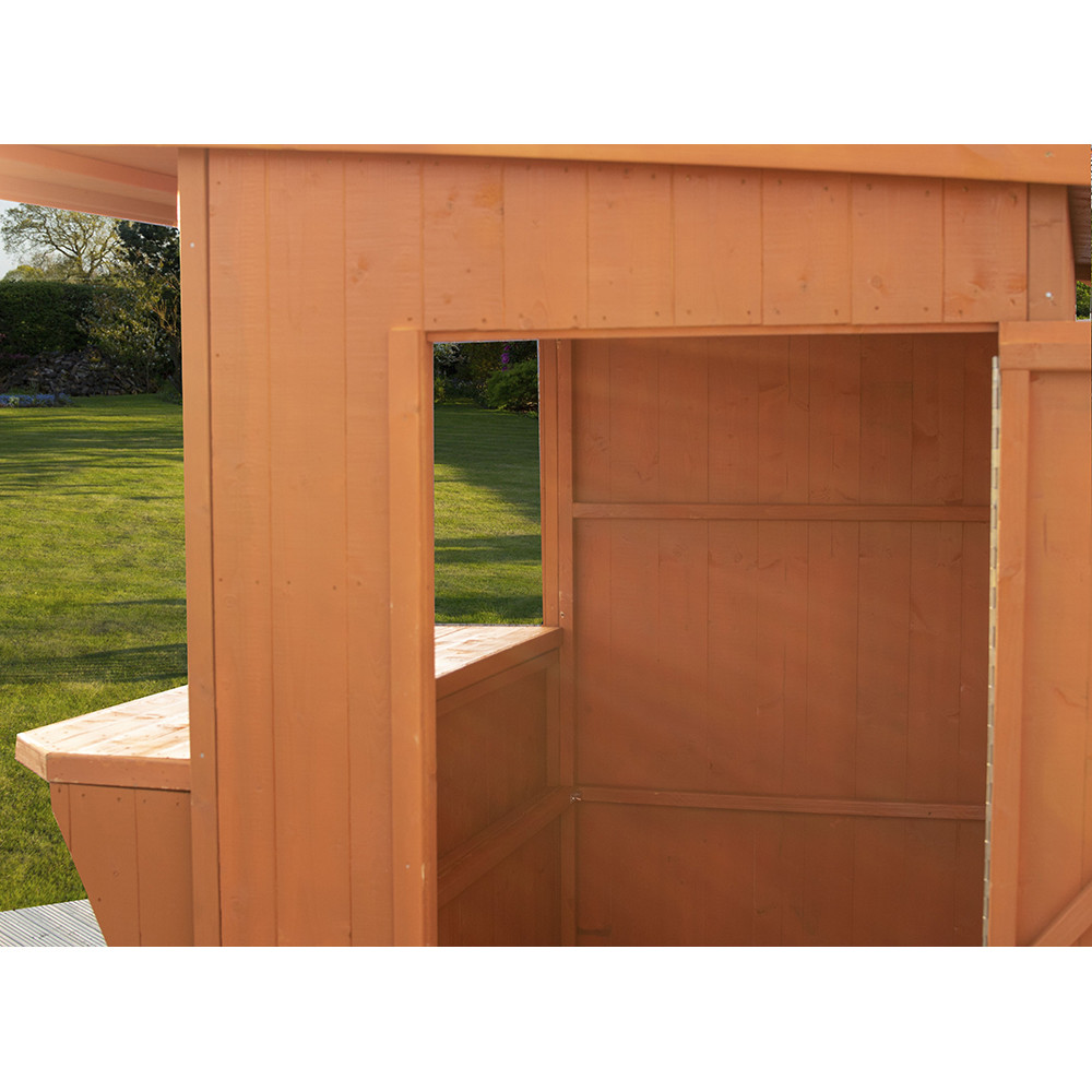 Perfect for adding some extra excitement to your usual BBQ to entertain your friends in style, this Shire Pent Garden Bar features a removable hatch which allows it to be used as a handy 6ft x 4ft garden store in the winter months. The hatch shuts by lifting it into place and fixing the four bolts.