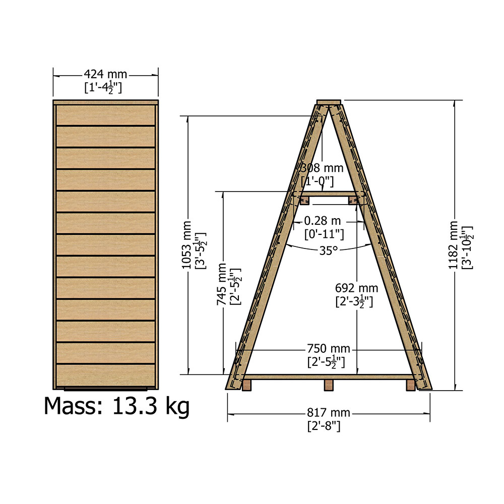 Features & Benefits: DISCON - Shire Small Pressure Treated Overlap Triangular Log Store - 3ft x 1ft (817mm x 424mm)
