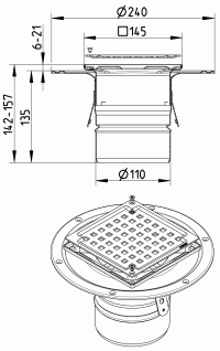 Shower Drain Adjustable Vertical Gully Stainless Steel 145x145mm-110mm