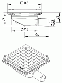 Shower Drain Square for Tiled Flooring - Stainless Steel 32mm Outlet Description - Removable trap cannot be used - Floor: concrete and tiled - No membrane, frame: 145x145mm - Outlet: Ø32/40mm, horizontal - Stainless steel: AISI304/EN1.4301 Read More