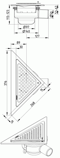 Please Note Trap Purchased Separately ADJ SHOWER DRAIN TRIO, LOW - Along wall - Floor: concrete and tiled - No membrane, frame: triangular - Outlet: Ø50mm, horizontal - Stainless steel: AISI304/EN1.4301 Read More