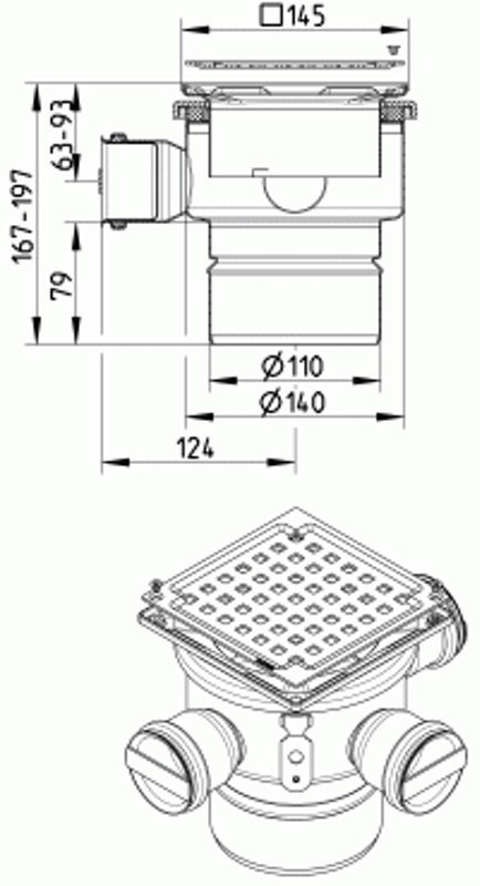 Shower Gully Square Adjustable Drain Stainless Steel 110mm ADJUSTABLE SHOWER DRAIN SQUARE - With side inlets Ø50mm - Floor: concrete and tiled - No membrane, frame: 145x145mm - Outlet: Ø110mm, vertical - Stainless steel: AISI304/EN1.4301 Read More