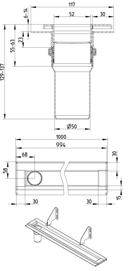 Shower Wet Room Channel Drain with Trap and 1000mm Vienna Grate - Adjacent to 3 Walls Please note this is for Installation Against 3 Walls Description CHANNEL - Against 3 walls - Floor: concrete and tiled - Frame: rectangular - Outlet: Ø50mm, vertical - Sta... Read More