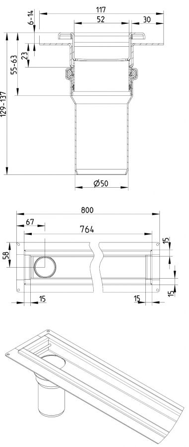 Shower Wet Room Channel Drain with Trap and 800mm Vienna Grate - Free Placing Description CHANNEL - Free placing - Floor: concrete and tiled - Frame: rectangular - Outlet: Ø50mm, vertical - Stainless steel: AISI304/EN1.4301 WATERLINE TRAP - To be built in, ... Read More