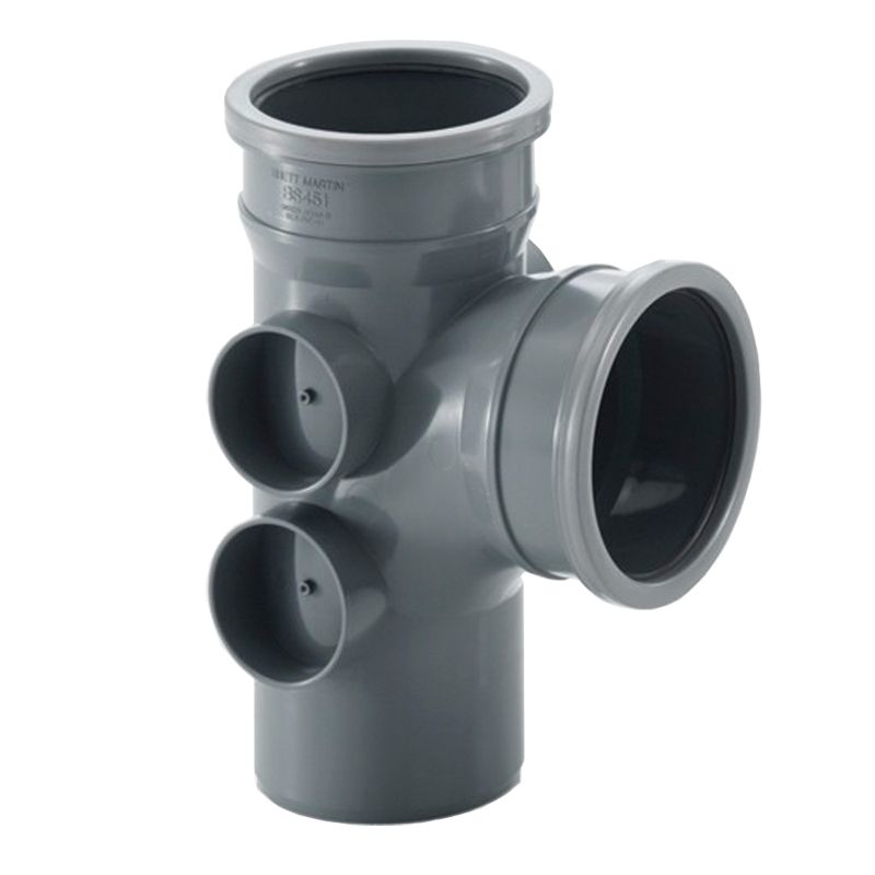 Brett Martin Soil Pipe Push Fit Double Socket Branch 4 Bosses 92.5dg 110mm - Grey