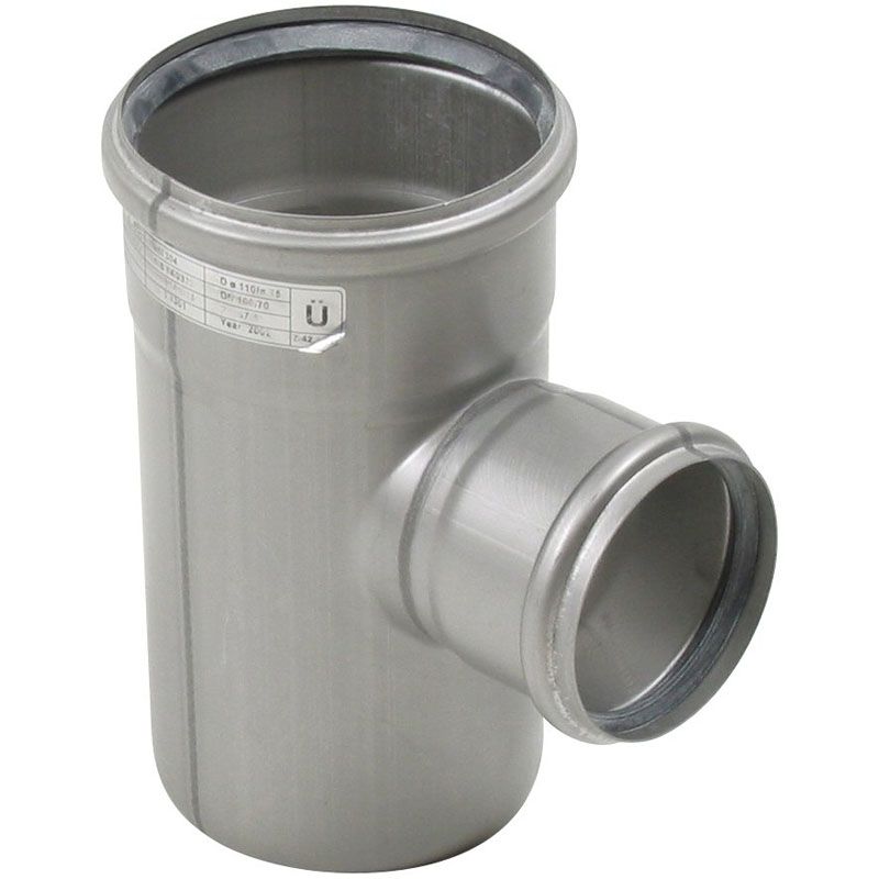 Stainless Steel Pipe 110-75mm 87.5dg Branch 304 Grade-Blucher Europipe Description Push-fit drainage pipes and fittings OD40 - OD250 mm in stainless steel AISI 316L or AISI 304 for installation in buildings and below ground (OD110 - OD250 mm) an onboard ships, in... Read More