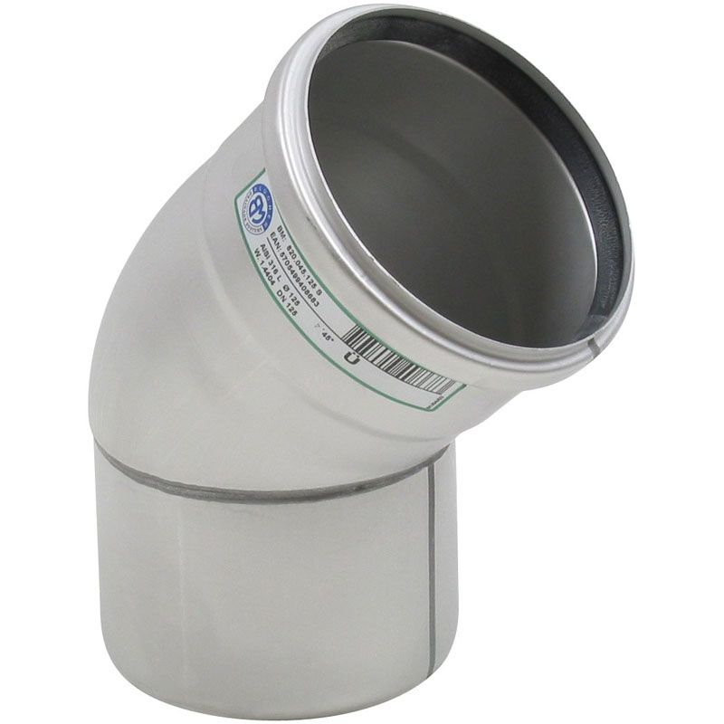Stainless Steel Pipe 125mm 45 Degree Bend 304 Grade - Blucher Europipe Description Push-fit drainage pipes and fittings OD40 - OD250 mm in stainless steel AISI 316L or AISI 304 for installation in buildings and below ground (OD110 - OD250 mm) an onboard ships, in gra... Read More