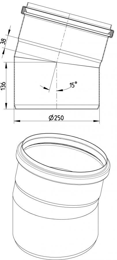 Stainless Steel Pipe 250mm 15 Degree Bend 316 Grade - Blucher Europipe