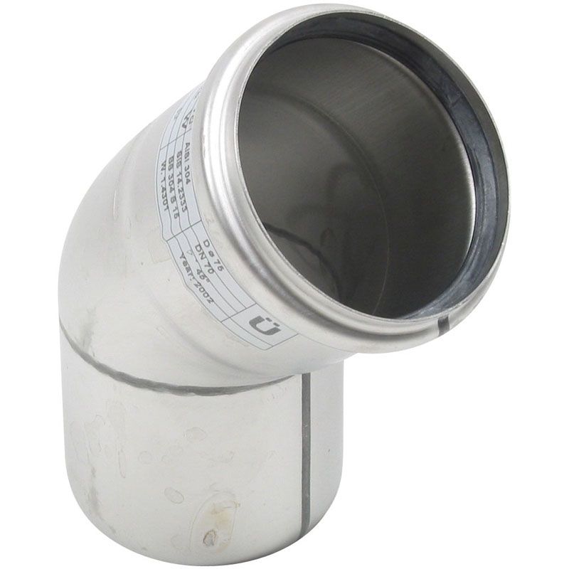 Stainless Steel Pipe 75mm 45 Degree Bend 304 Grade - Blucher Europipe Description Push-fit drainage pipes and fittings OD40 - OD250 mm in stainless steel AISI 316L or AISI 304 for installation in buildings and below ground (OD110 - OD250 mm) an onboard ships, in grav... Read More
