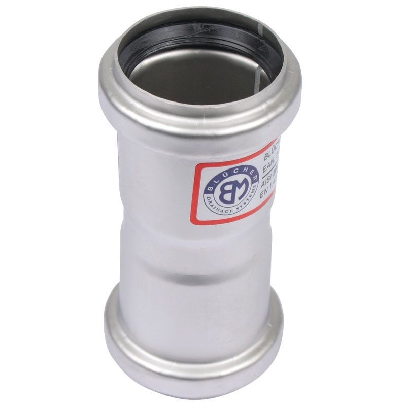 Push-fit drainage pipes and fittings OD40 - OD250 mm in stainless steel AISI 316L or AISI 304 for installation in buildings and below ground (OD110 - OD250 mm) an onboard ships, in gravity and vacuum systems. Pipes and fittings have socket with pre-fitted sealing ring, standard in EPDM rubber, alternatively in NBR or FPM.