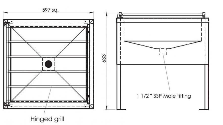 Raised Gully sink with hinged grill cover.