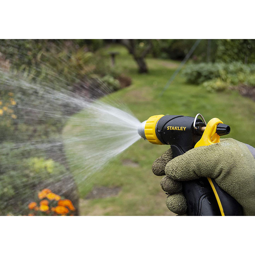 The STANLEY Accuscape ProSeries Heavy Duty 3 Way Hose Nozzle is easy to use with its rear trigger and it allows you to have full control over the pressure needed.