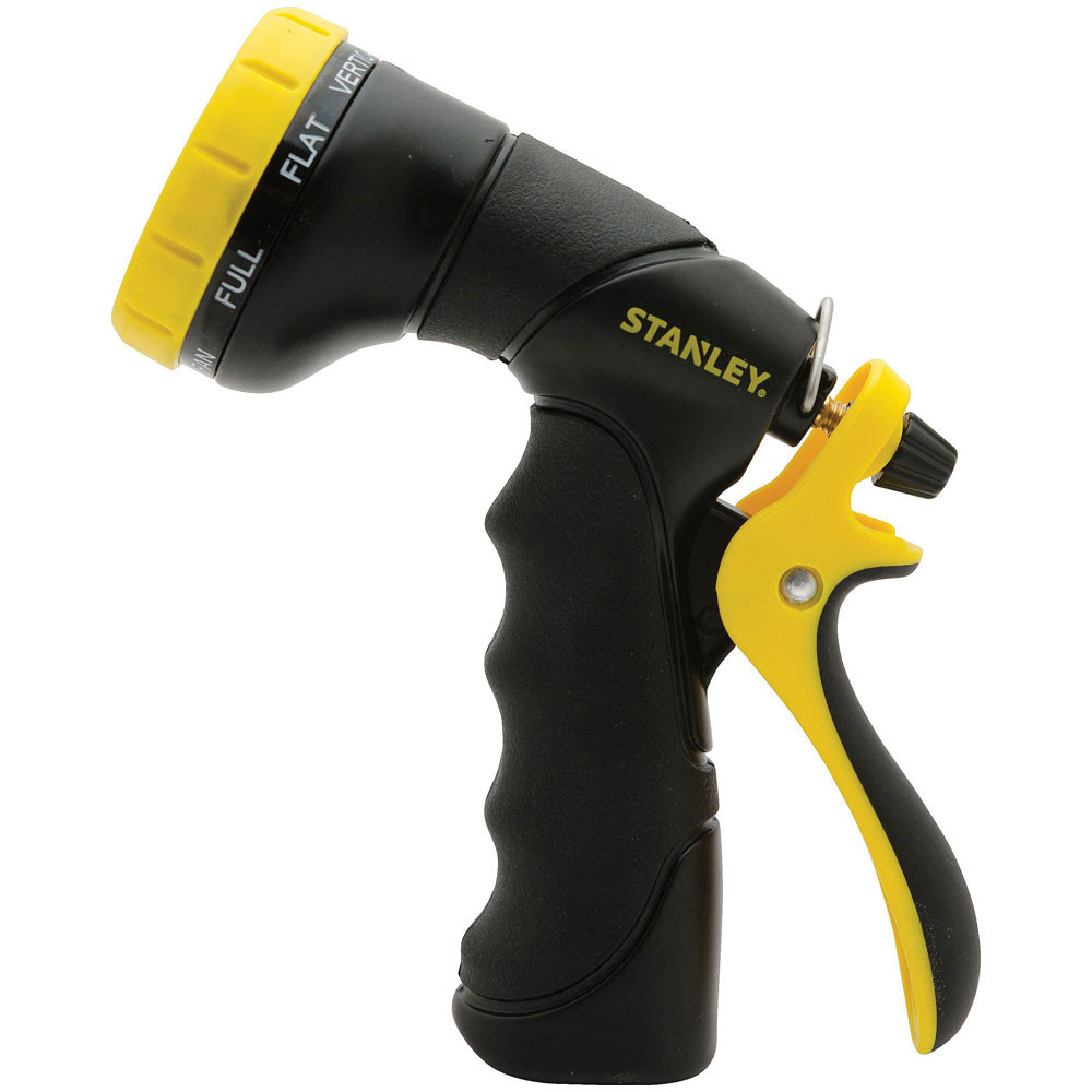 The STANLEY Accuscape ProSeries Heavy Duty 8 Pattern Hose Nozzle is an adjustable and heavy-duty spray nozzle that is built for difficult watering jobs.