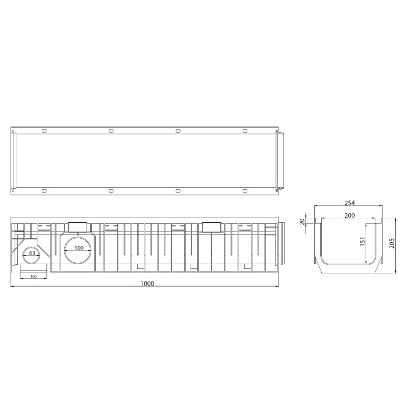 Channel in HD-PE VIP20 200/151 black and blue (for swimming pool) Watertight: To ensure the watertight of the channels, it is advisable to use an adhesive bituminous sealing. As a complete and long lasting guarantee of absence of leakages through the joints of the channel... Read More