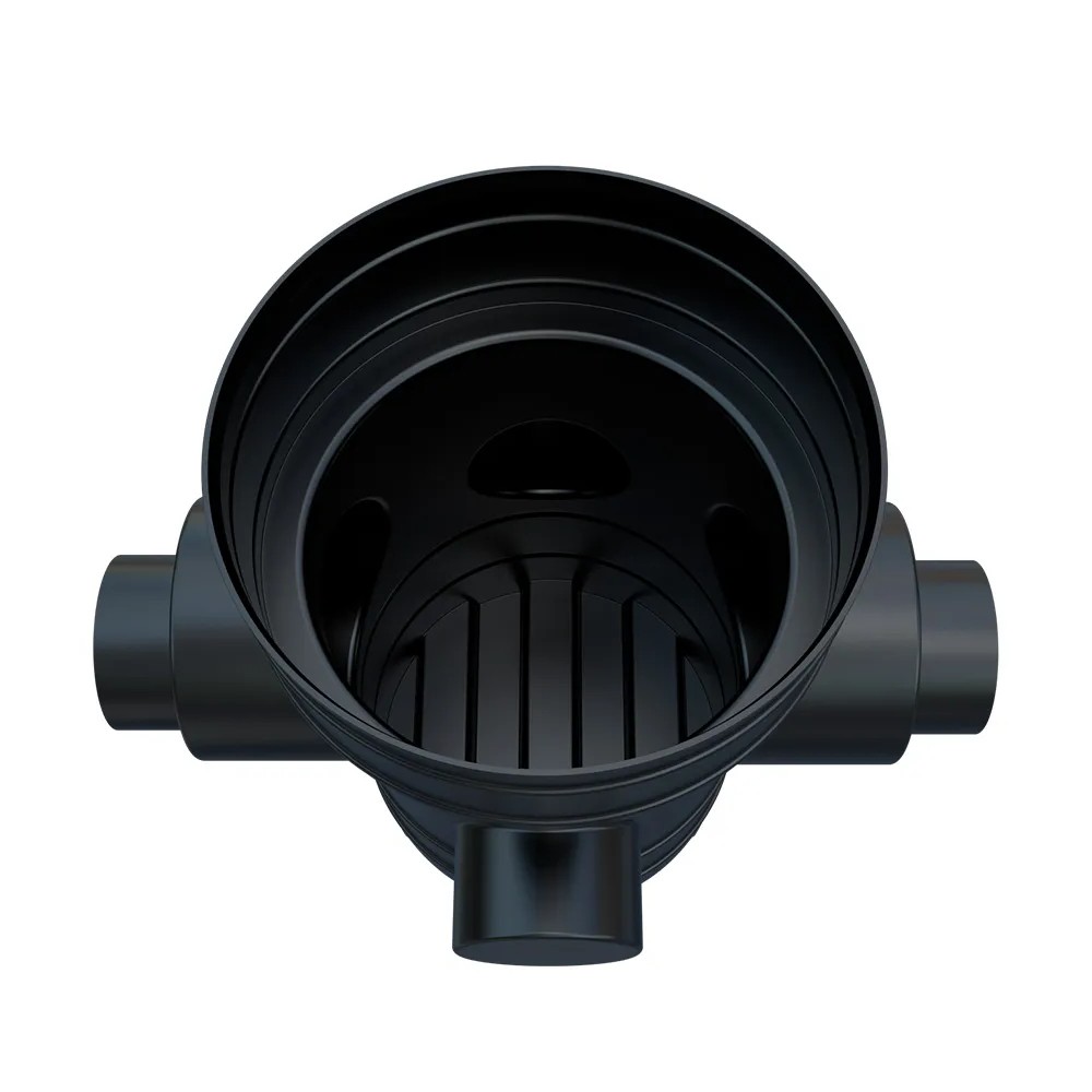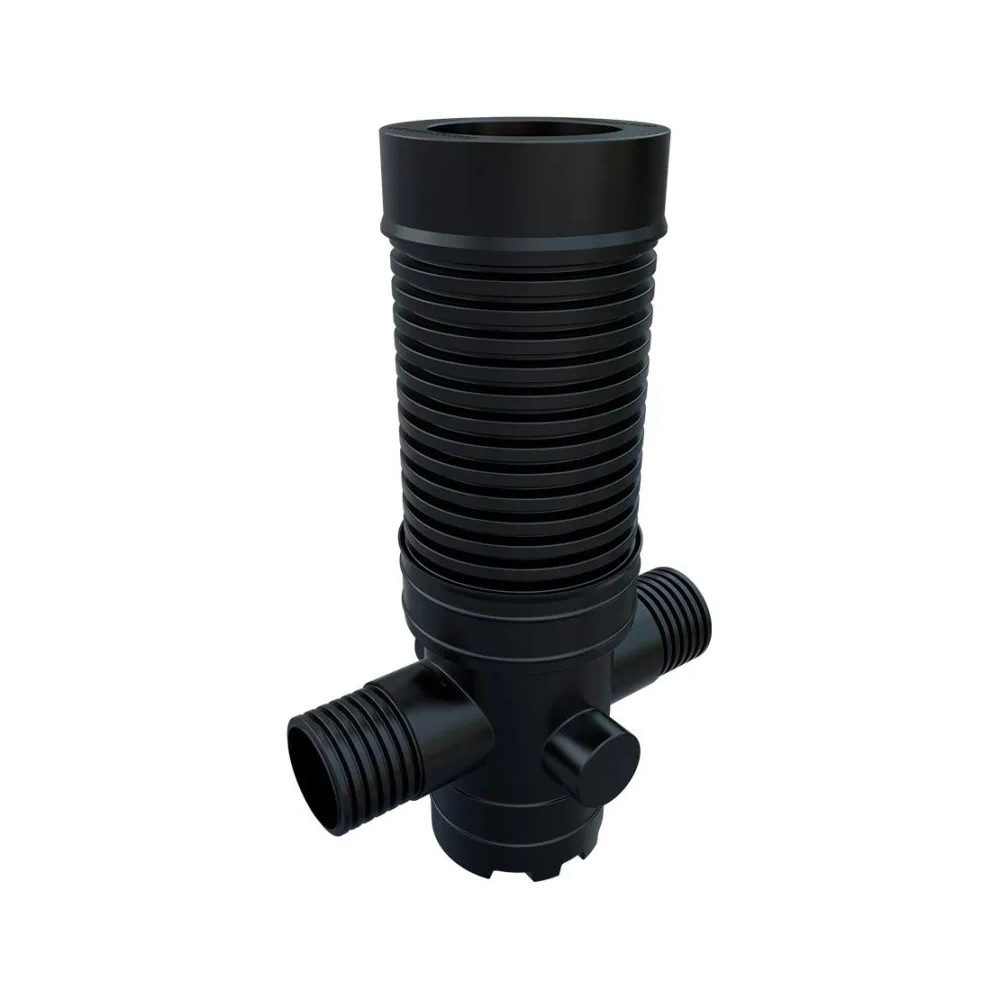 The Accesso AICCP450225150B from Turtle Enviro is a high-strength, pre-assembled catchpit chamber designed for surface water systems. With a 450mm diameter, this robust unit features a rotational moulded LLDPE chamber base, which is chemical and impact resistant, and offers flexibility with 225mm or 150mm main channel socket connections. Additionally, it includes two 150mm side inlets positioned at 90 degrees and 270 degrees from the outlet, which come as blanked ends to be utilised as needed.