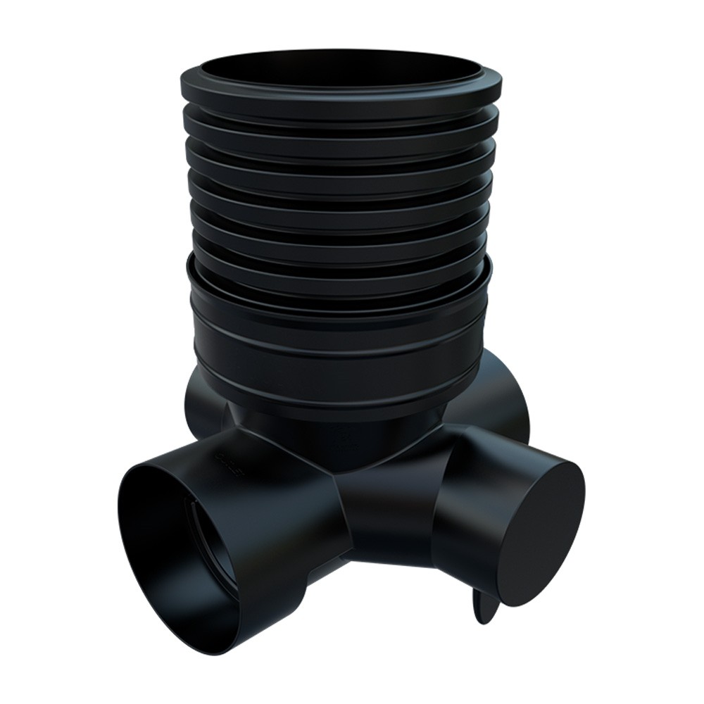 The 450mm diameter, pre-assembled inspection chamber features a robust rotational moulded LLDPE base, is chemical and impact resistant, with 300mm main channel socket connections. Additionally, it includes two 225mm side inlets positioned at 90 degrees and 270 degrees from the outlet at 0 degrees. These side inlets are supplied as blanked ends, allowing for flexible and customized configurations as needed.