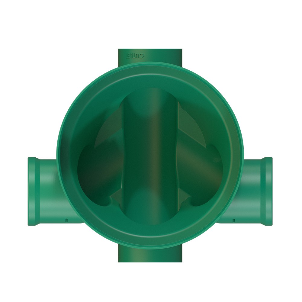 • 150mm Naylor Metrodrain or N Drain outlet at 0 degrees and inlets at 90, 180 and 270 degrees