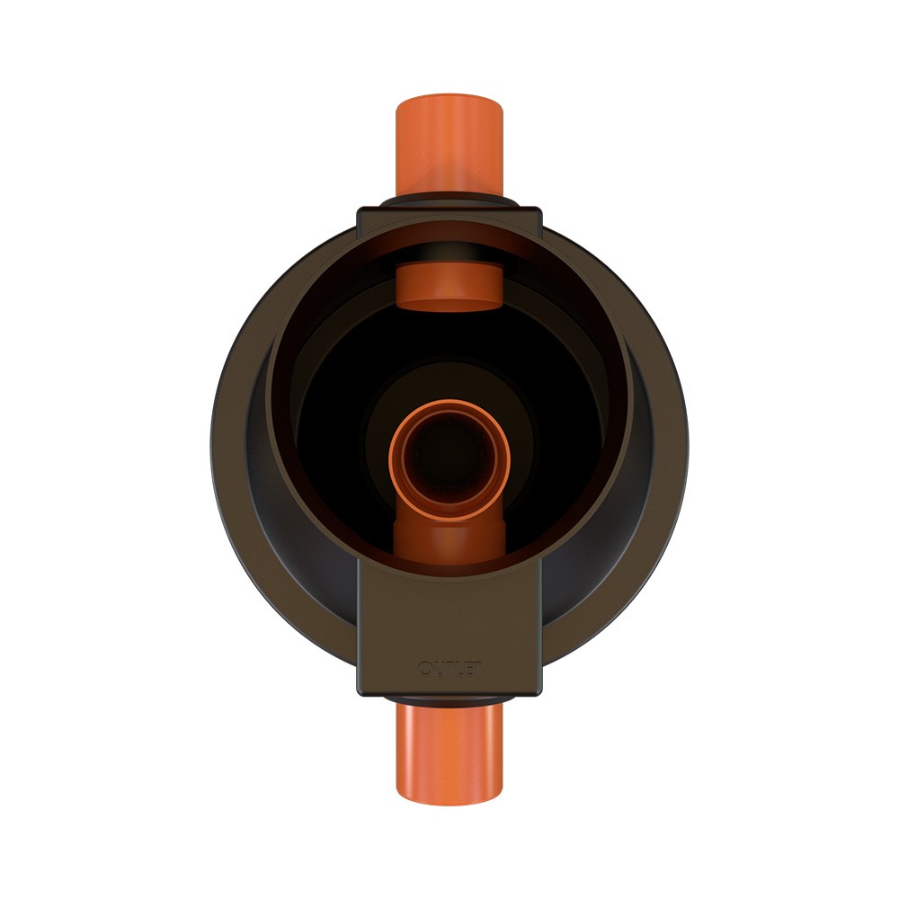 • Main Channel Pipework - 110mm Single wall EN 1401 outlet at 0 degrees and inlet at 180 degrees