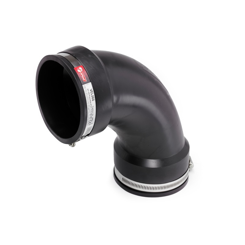 VIPSeal PVC 90° elbows, tees and end caps are manufactured from a high quality thermoplastic flexible PVC and is ideal as a “multifit” fitting to connect to most common pipe sizes in above ground domestic applications, e.g. drain, soil, waste and vent pipe systems.