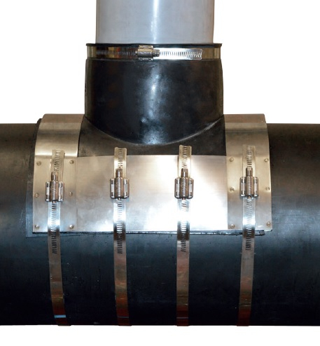 These couplings are available for both 45° and 90° lateral connections. When installed correctly, they can withstand an internal pressure of 0.5 bar. The saddle provides a seal that is secured with straps encircling the outside of the main pipe.