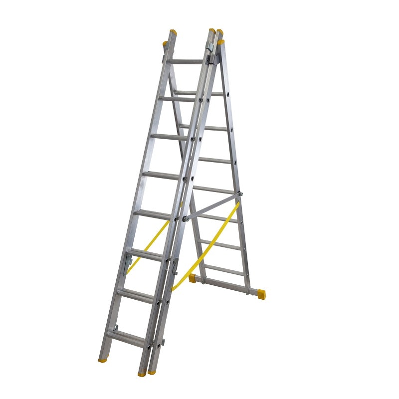 • Combines as an extension ladder, freestanding extension ladder and stepladder