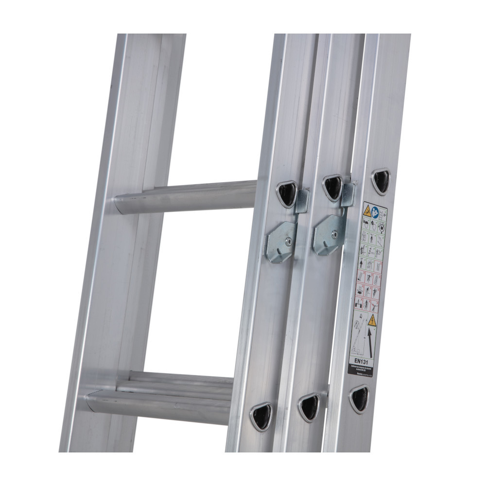 To further enhance security, this ladder features manual thumb-operated locking catches that prevent the sections from separating. With a 150kg load capacity, it is perfect for industrial use.