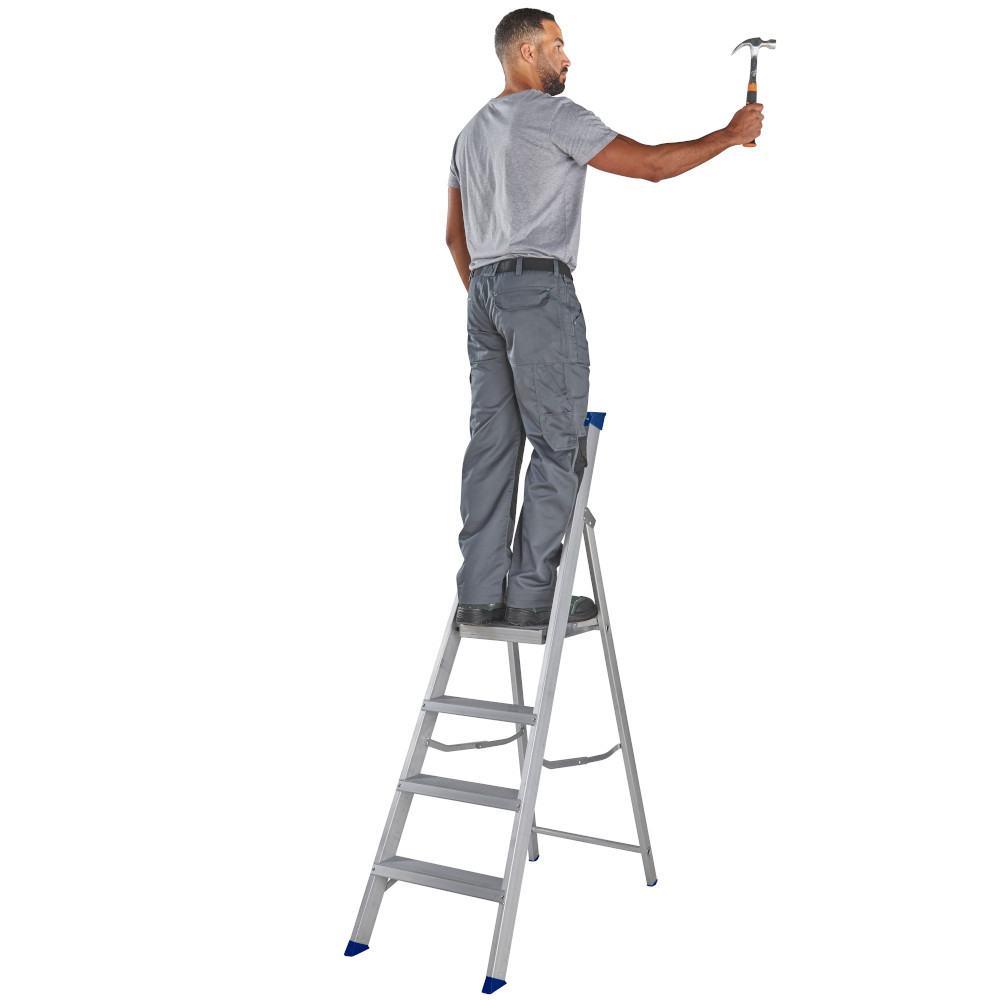 The 71504 4 tread MasterTrade Platform Stepladder is a solid and reliable aid for professional work. Features include heavy duty internal spreaders, top edge caps for a smoother profile and large slip resistant feet. The platform height of this ladder is 0.86m. Suitable for professional use.