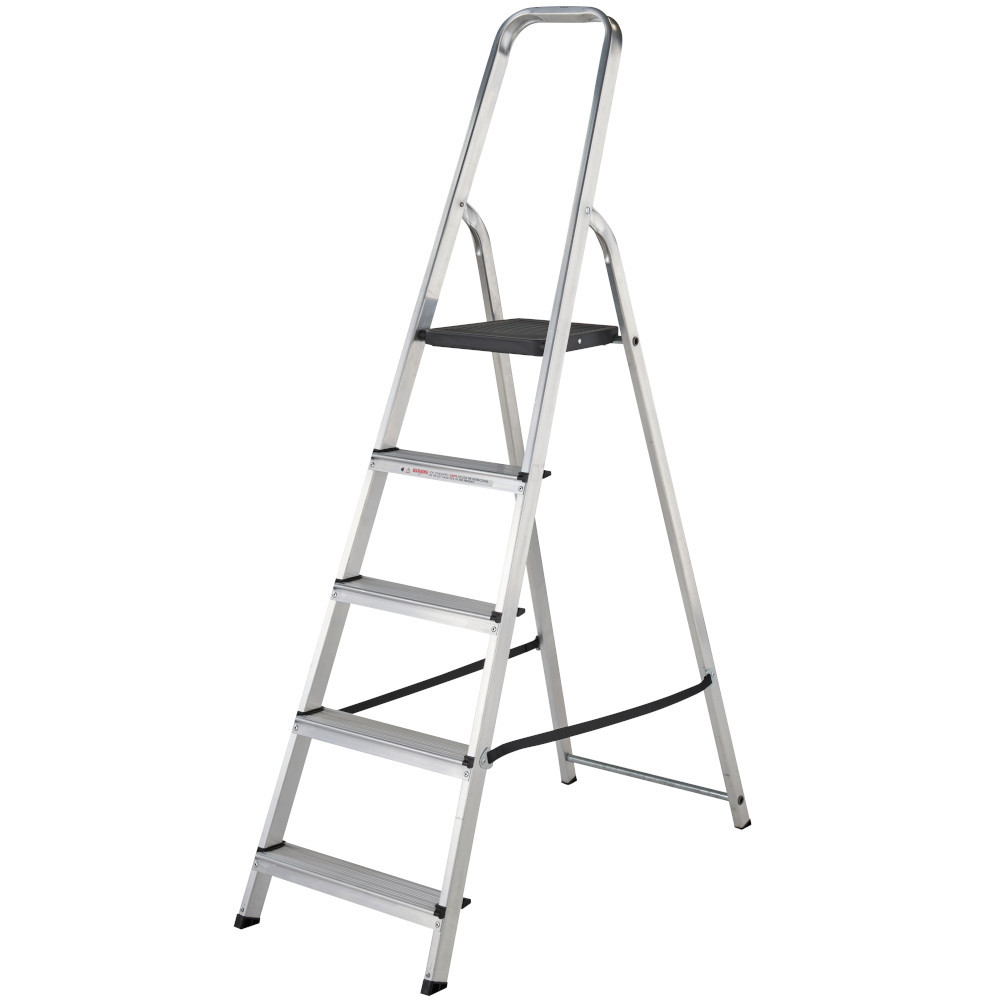 The 74005 5 tread High Handrail Aluminium Stepladder features a large slip-resistant feet, high safety handrail, and treads for added stability, Suitable for both professional and domestic use.