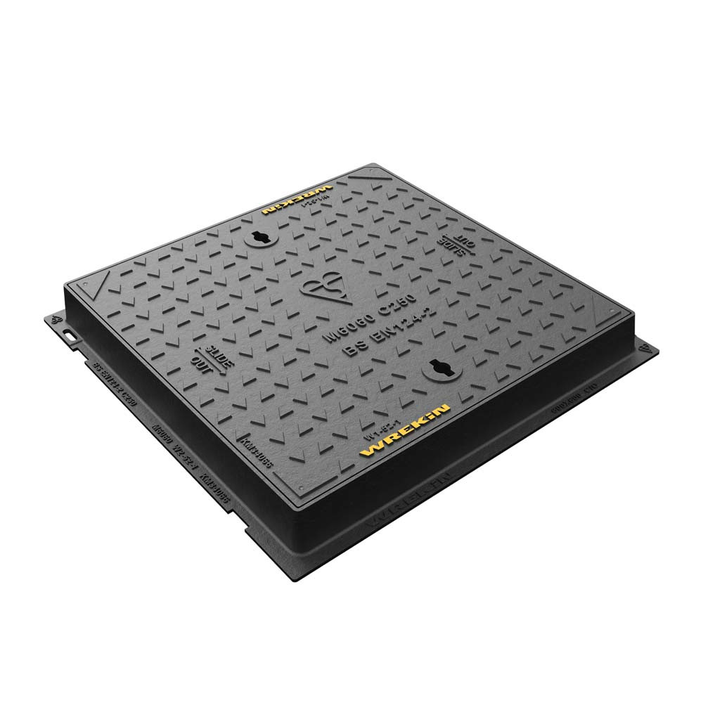 Constructed from strong and highly durable ductile iron, this BS EN 124 1994 C250 Wrekin Ductile Iron Manhole Cover and Frame can tolerate 25-tonne test loads. It provides a high-strength, lightweight option for Group 3 Class C250 environments.