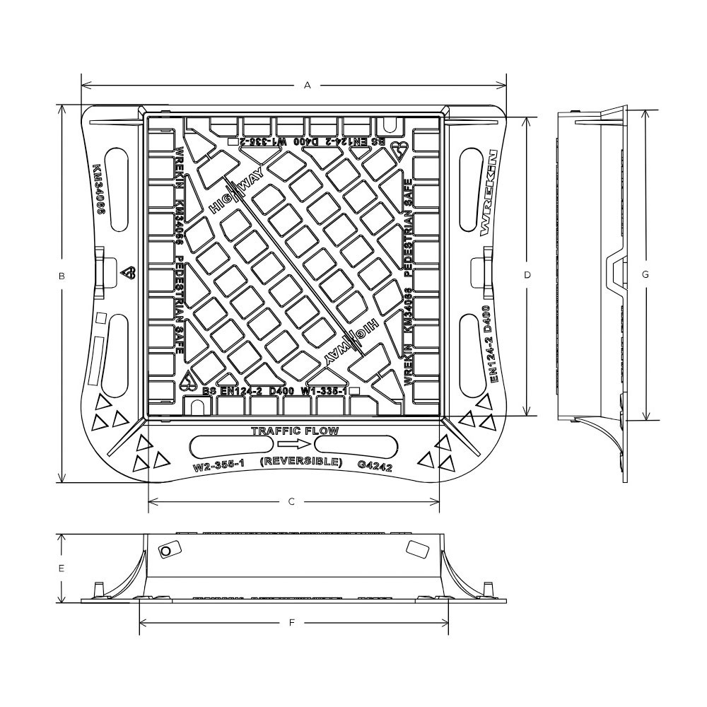 Features & Benefits: WREKIN Highway D400 3-Flange Pedestrian Friendly Ductile Iron Gully Grate - 425mm x 425mm x 100mm