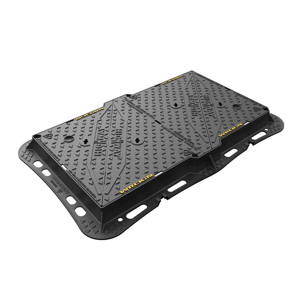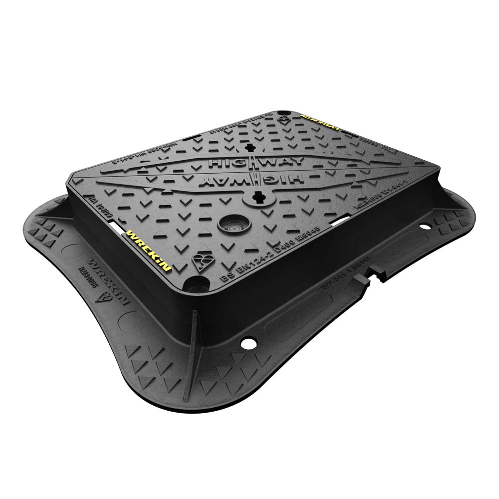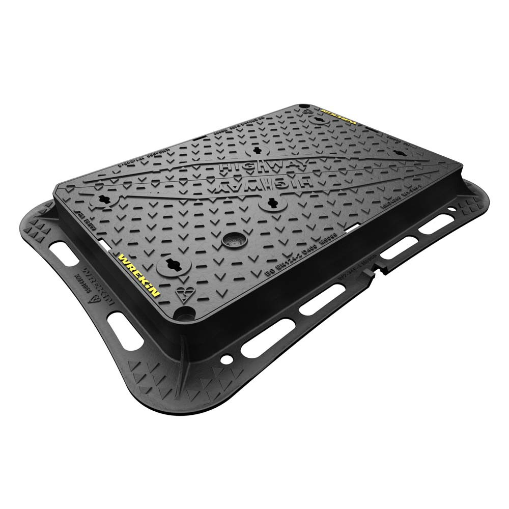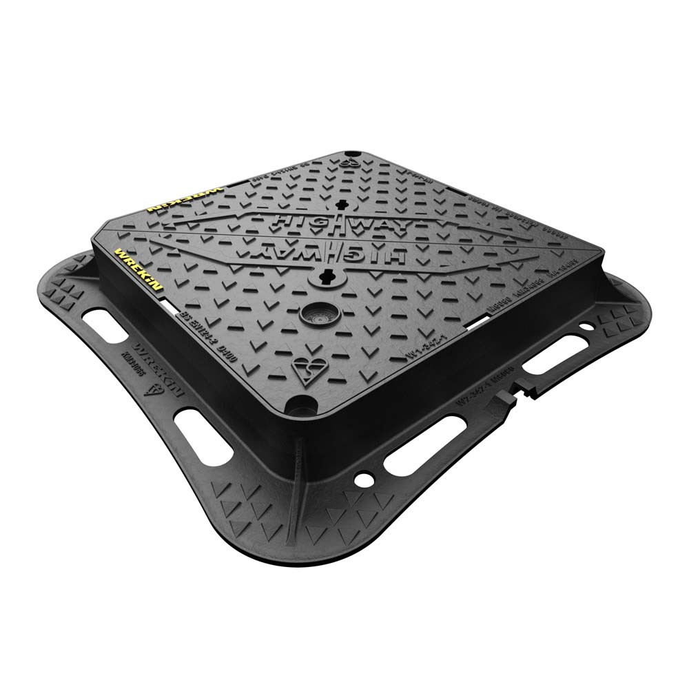 This Highways range Cast Iron Access Cover by Wrekin is a Group 4 D400 loading class manhole cover used in carriageway environments. A strong, durable cast iron material, the patented frame design has enlarged frame corners to ensure the load is dissipated. Its design also encompasses mechanical lifting points to make removal of the cover easier if needed and a three-point suspension for non-rock stability.