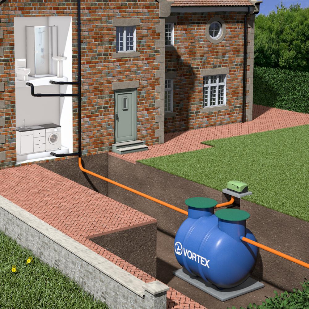 WTE VORTEX GRP Eco Electric Sewage Treatment Plant 550mm Invert - Gravity