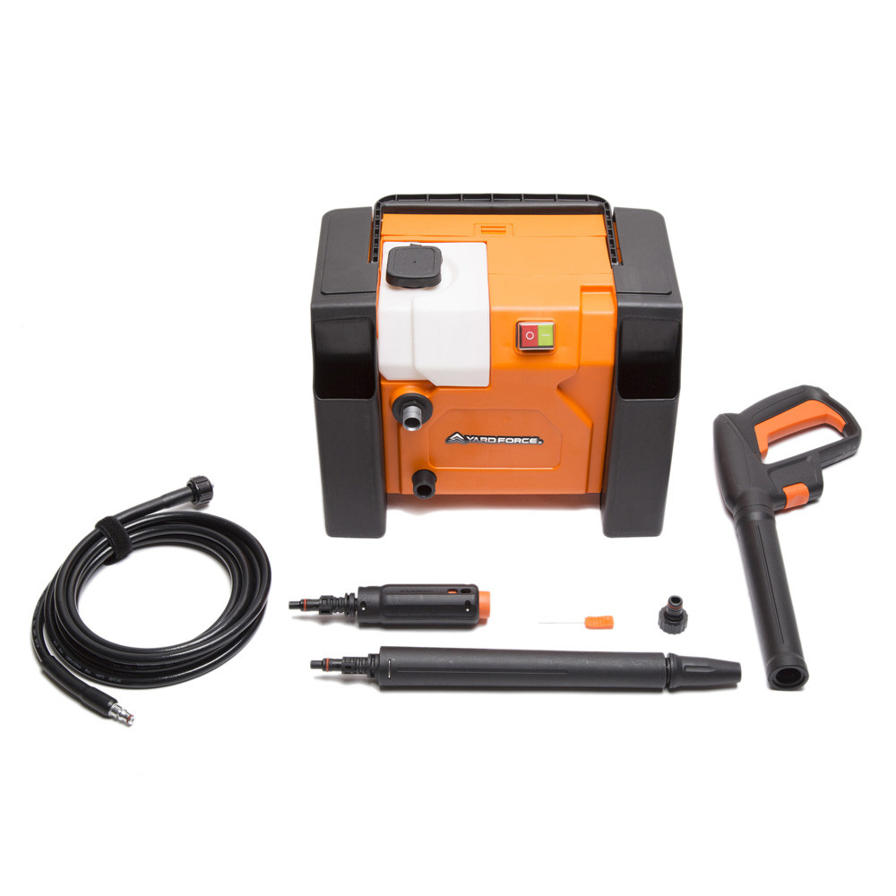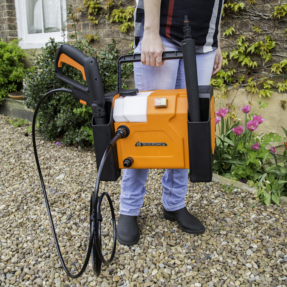 Featuring a unique, compact design, this Yard Force pressure washer is highly portable wherever your cleaning needs arise. It comes with a comprehensive set of accessories, all conveniently stored on the unit. Included in the package are a high-pressure hose, turbo nozzle, high-pressure nozzle, lance, spray gun and even a 5m cable on board.